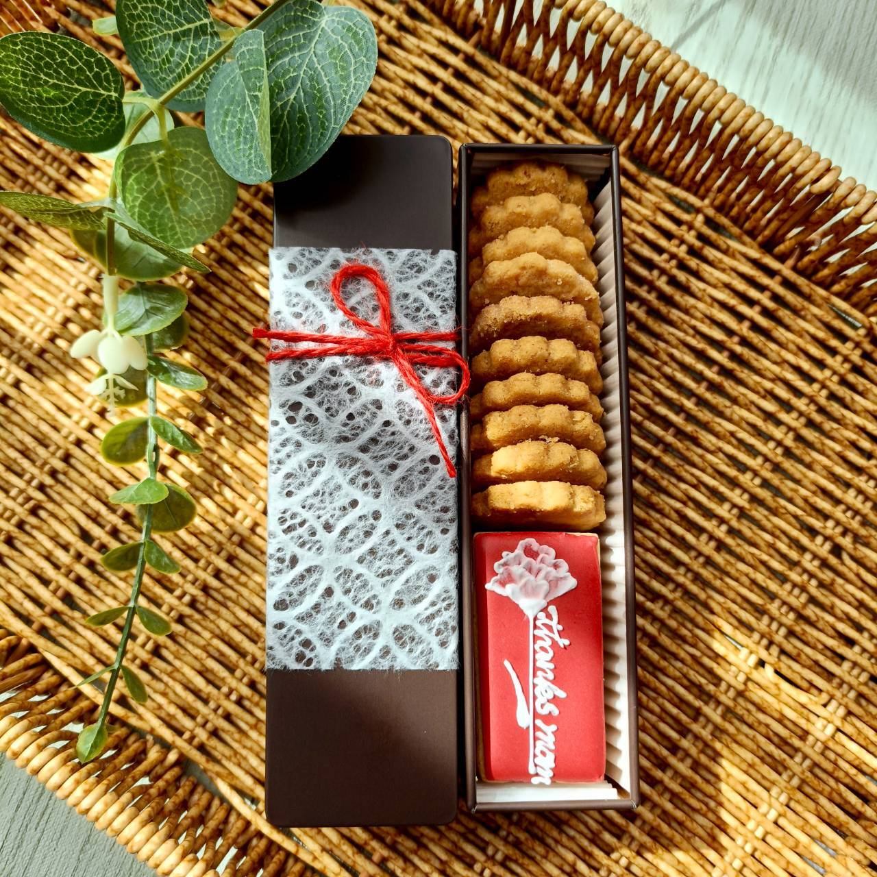 深紅のカーネーションを描いたシンプルなアイシングクッキー缶をご用意しました。